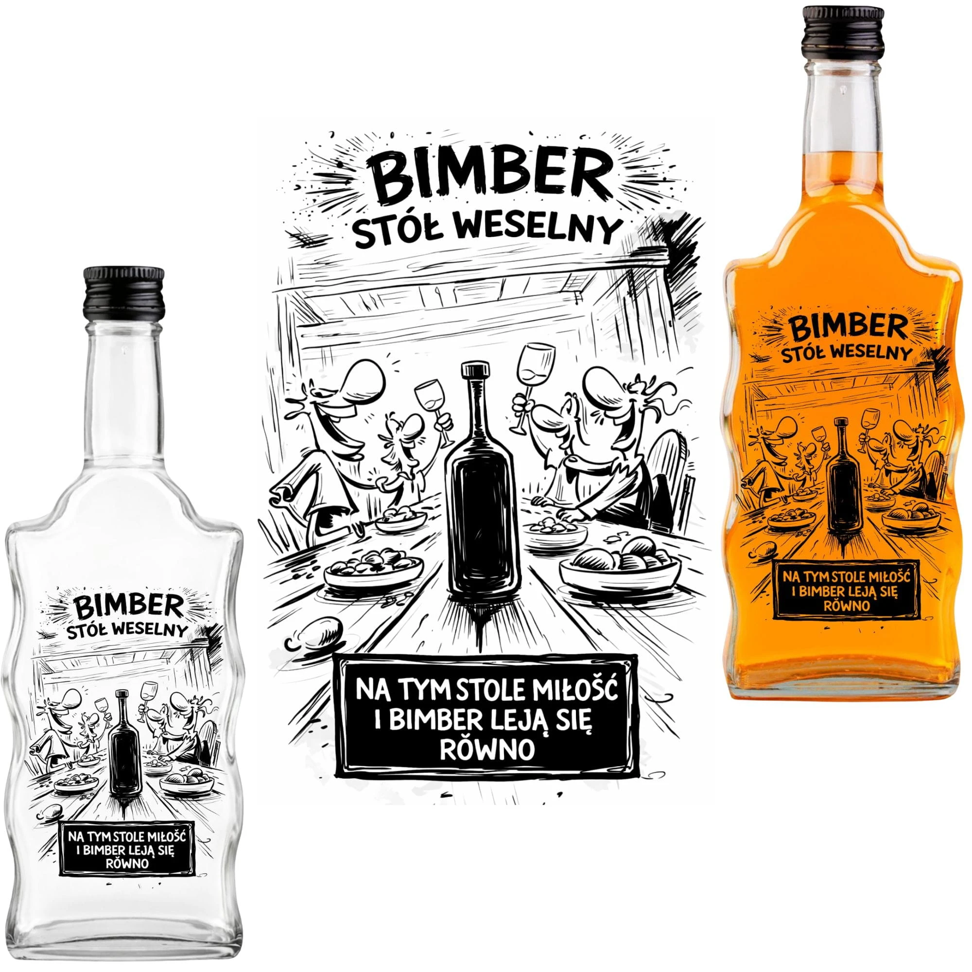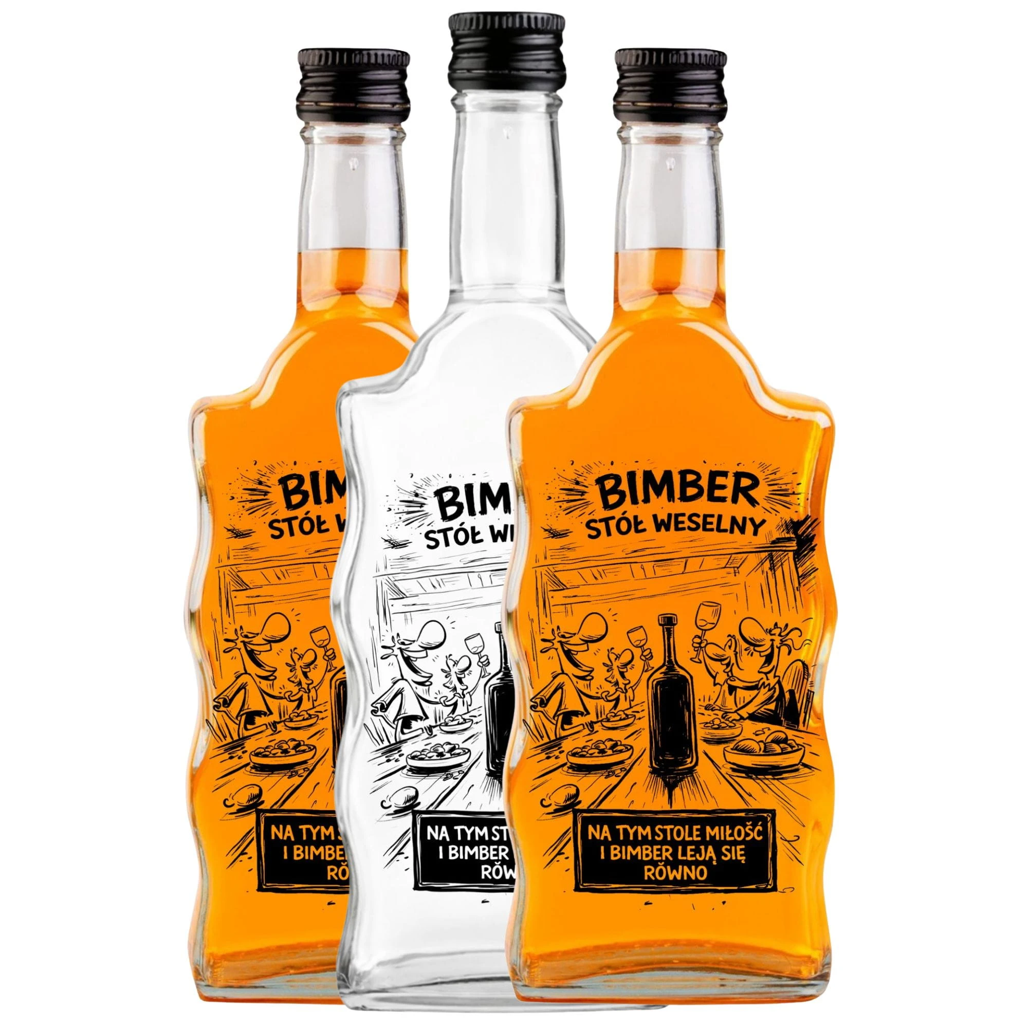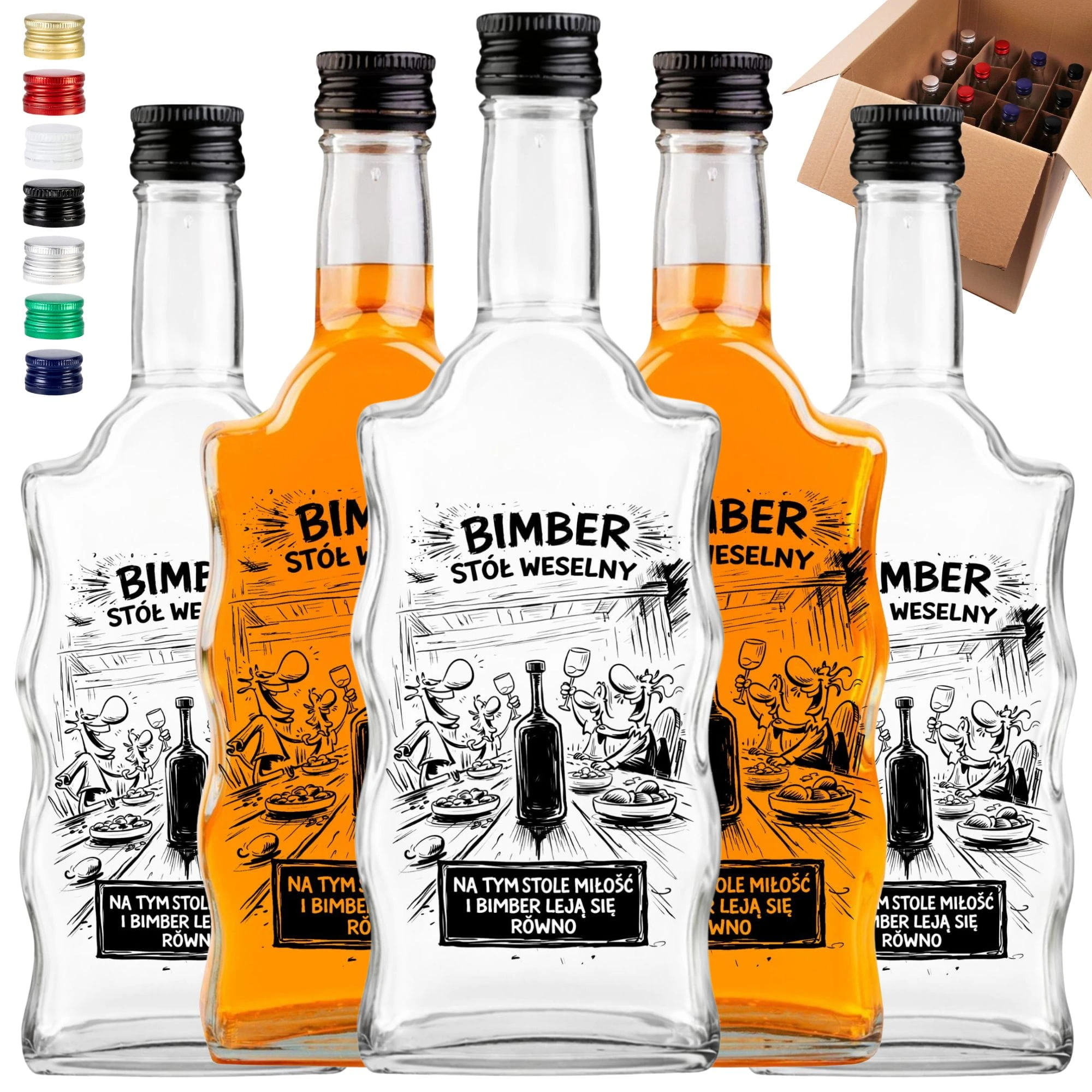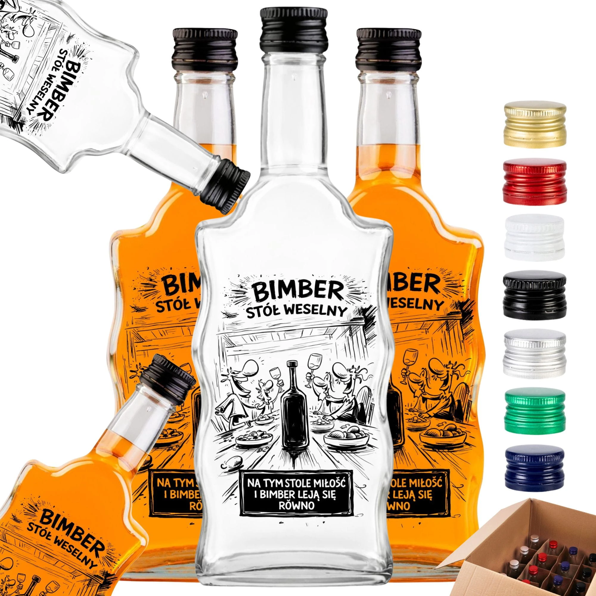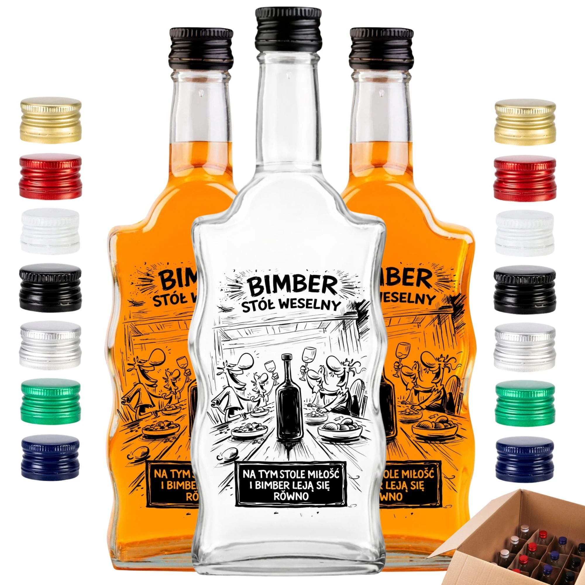 Zrób to z klasą i przygotuj biesiadę, o której goście będą mówić jeszcze długo po poprawinach! Zestaw 10 sztuk z komiksowym nadrukiem "Bimber Stół Weselny" to najlepsza inwestycja w dobry humor i elegancką oprawę domowych trunków. Postaw na profesjonalne, puste flaszki na bimber od Dr Bimber, zalej je swoim mocnym destylatem typu bimber/wódka i obserwuj, jak znikają w mgnieniu oka. Dodaj pakiet do koszyka i rozpocznij rozlew!