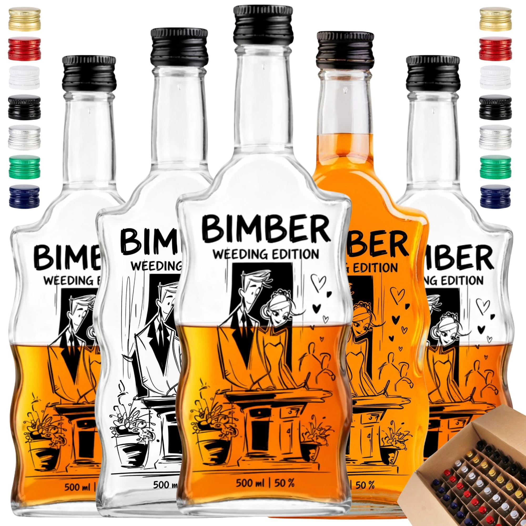 Skończ z domową prowizorką i zaprezentuj efekty swojej destylacji z prawdziwą oryginalnością! Komplet 10 sztuk z nowoczesnym, rysunkowym nadrukiem "Wedding Edition" to pewność, że Twoje wyroby zdominują biesiadę swoim stylem. Wybierz pancerne, oryginalne butelki na wesele od Dr Bimber, zalej je po korek swoim doskonałym wyrobem klasy bimber/wódka (lub jaskrawą cytrynówką!), twardo dokręć zakrętki i ciesz się statusem mistrza ceremonii. Dodaj ten dziesięciopak do koszyka i rozpocznij luksusowy, rzemieślniczy rozlew!