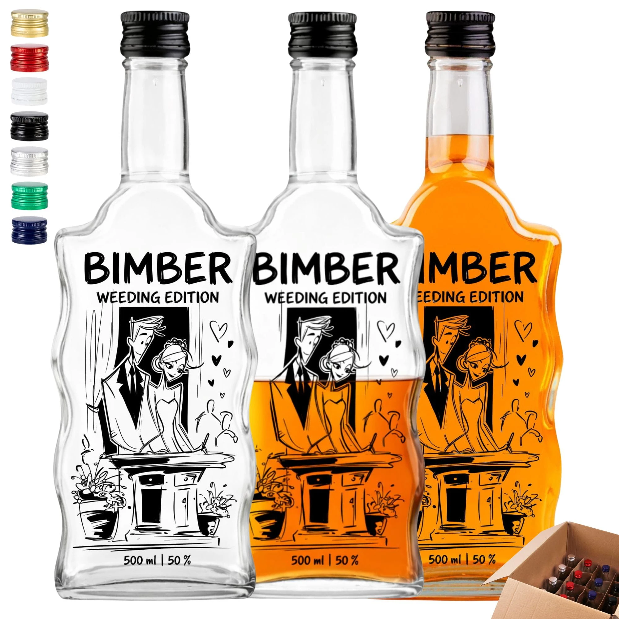 Szukasz nieszablonowej oprawy dla swoich domowych trunków i interesują Cię oryginalne butelki szklane w detalicznej ilości? Zgarnij unikalny zestaw 10 sztuk! W komplecie oferujemy puste butelki szklane z linii Fala (500 ml). Wyróżnia je nowoczesny, rysunkowy nadruk Pary Młodej "Wedding Edition", który stanowi genialną alternatywę dla standardowych wzorów. Wraz z tym profesjonalnym szkłem na alkohol otrzymujesz 10 sztuk dopasowanych, całkowicie szczelnych zakrętek monopolowych. Dr Bimber dostarcza niezawodne, nienapełnione flaszki na wódkę z wypalanym sitodrukiem hutniczym. Twoja rola? Przygotować wybitny domowy bimber/wódka lub jaskrawą cytrynówkę, napełnić te karafki i stworzyć eleganckie upominki, które goście zapamiętają na bardzo długo!