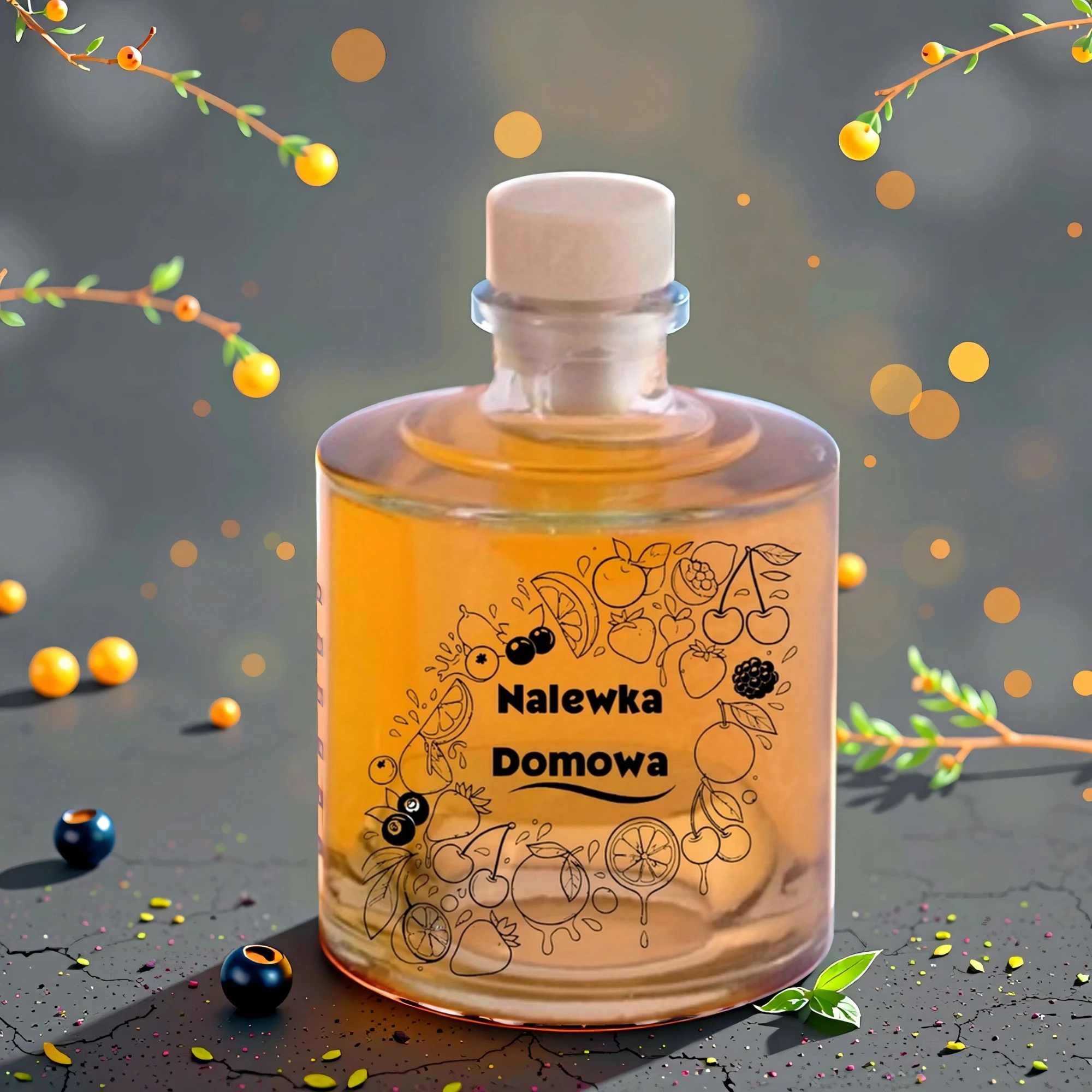 20x Butelka Baryłka NALEWKA DOMOWA 250ml ozdobne z nadrukiem, na nalewki owocowe, prezenty dla gości + korek