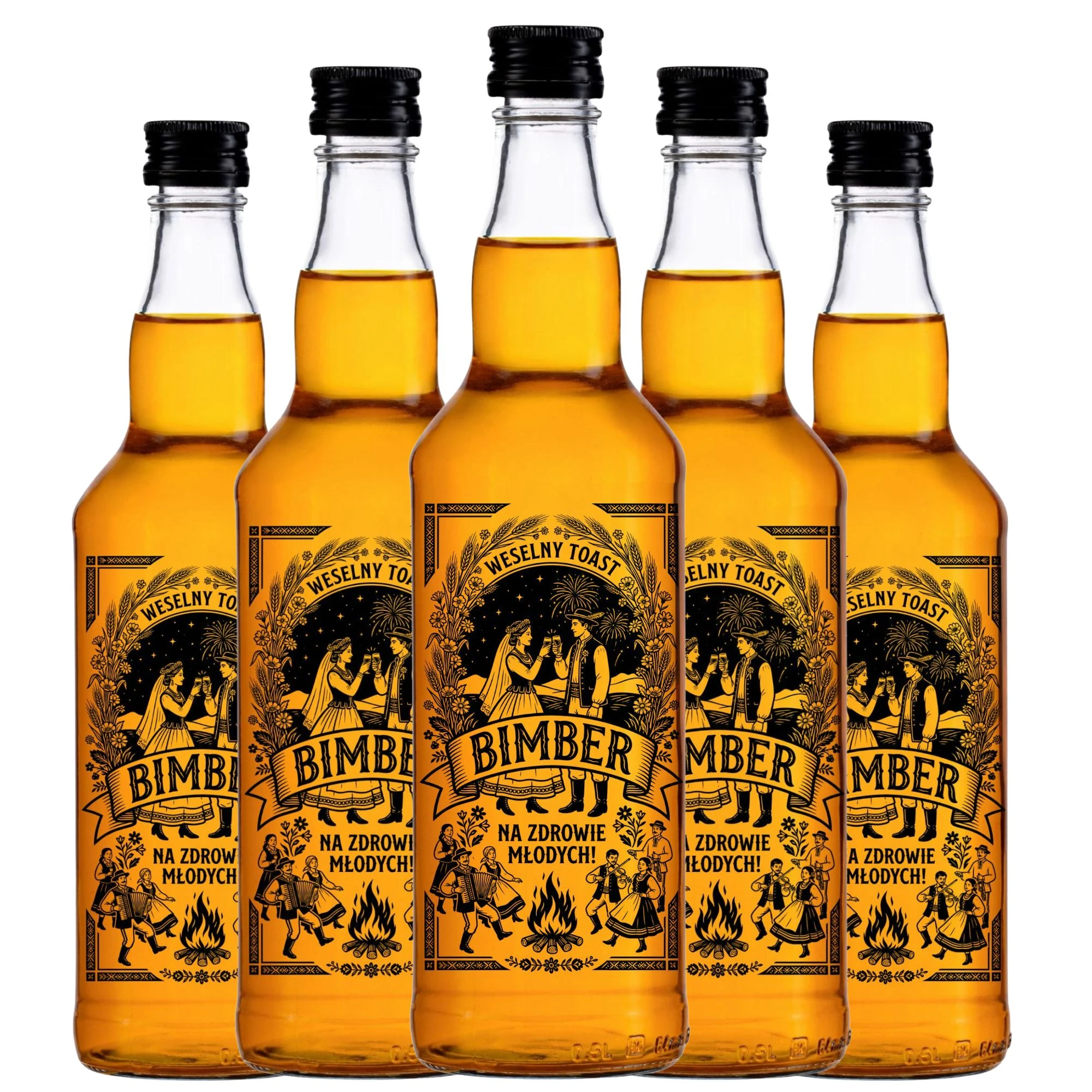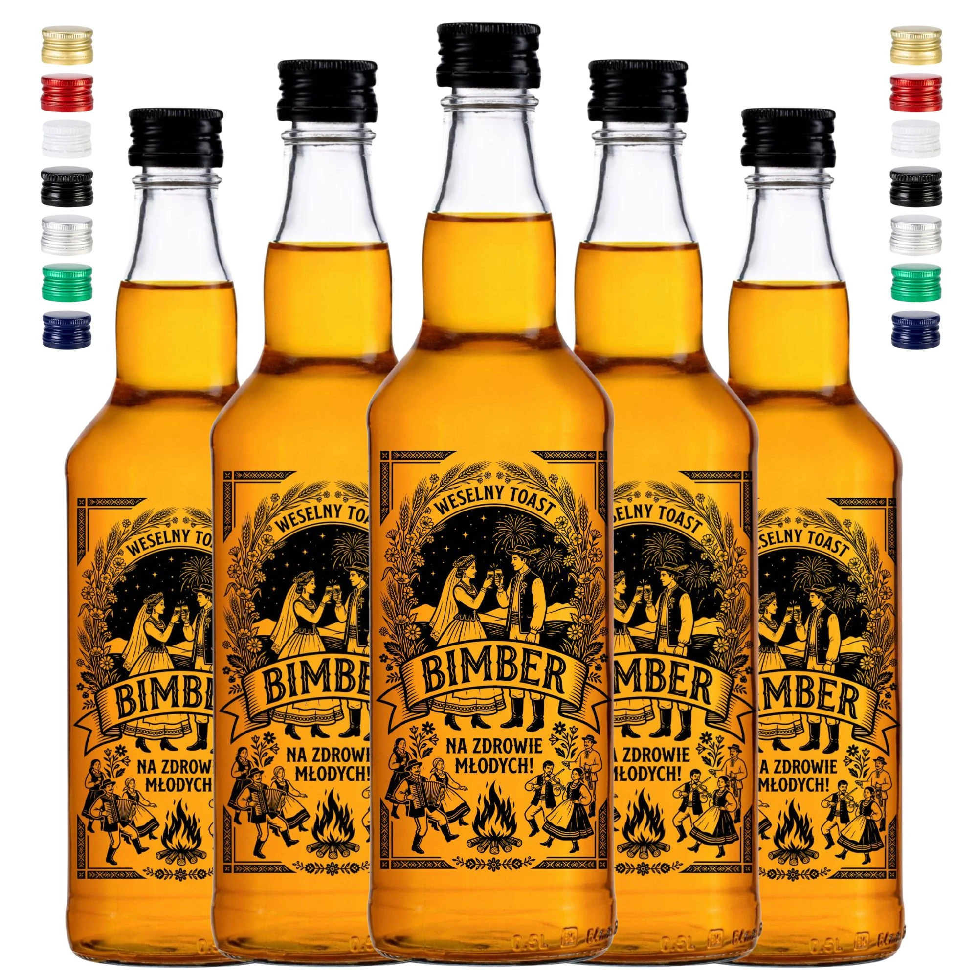 Prawdziwe polskie wesele nie może obejść się bez bimbru serwowanego z odpowiednią klasą i folkowym przytupem! Inwestując w zestaw 20 sztuk tradycyjnych butelek monopolowych z wypalanym, ludowym motywem pary młodej przy ognisku, dajesz gościom to, co najlepsze. Znakomity bimber weselny potrzebuje solidnego pancerza, dlatego Dr Bimber dostarcza puste, czyste szkło weselne w towarzystwie niezawodnych czarnych zakrętek. My dajemy profesjonalną oprawę, a Ty napełniasz to dzieło sztuki swoimi procentami. Te absolutnie wyjątkowe butelki z nadrukiem na wesele sprawią, że wiejski stół będzie tętnił życiem do samego rana!