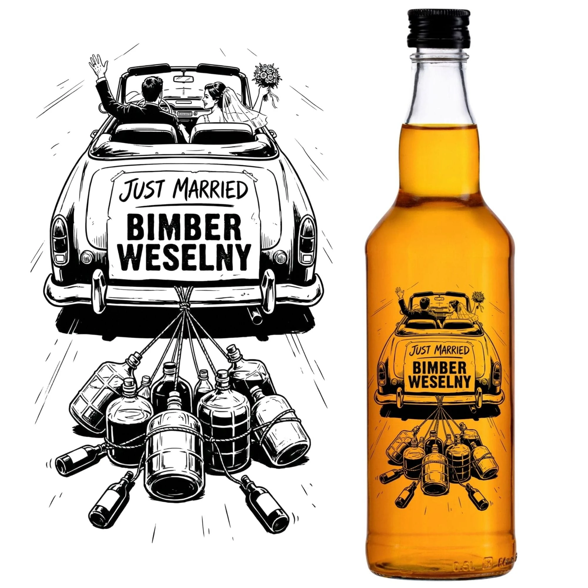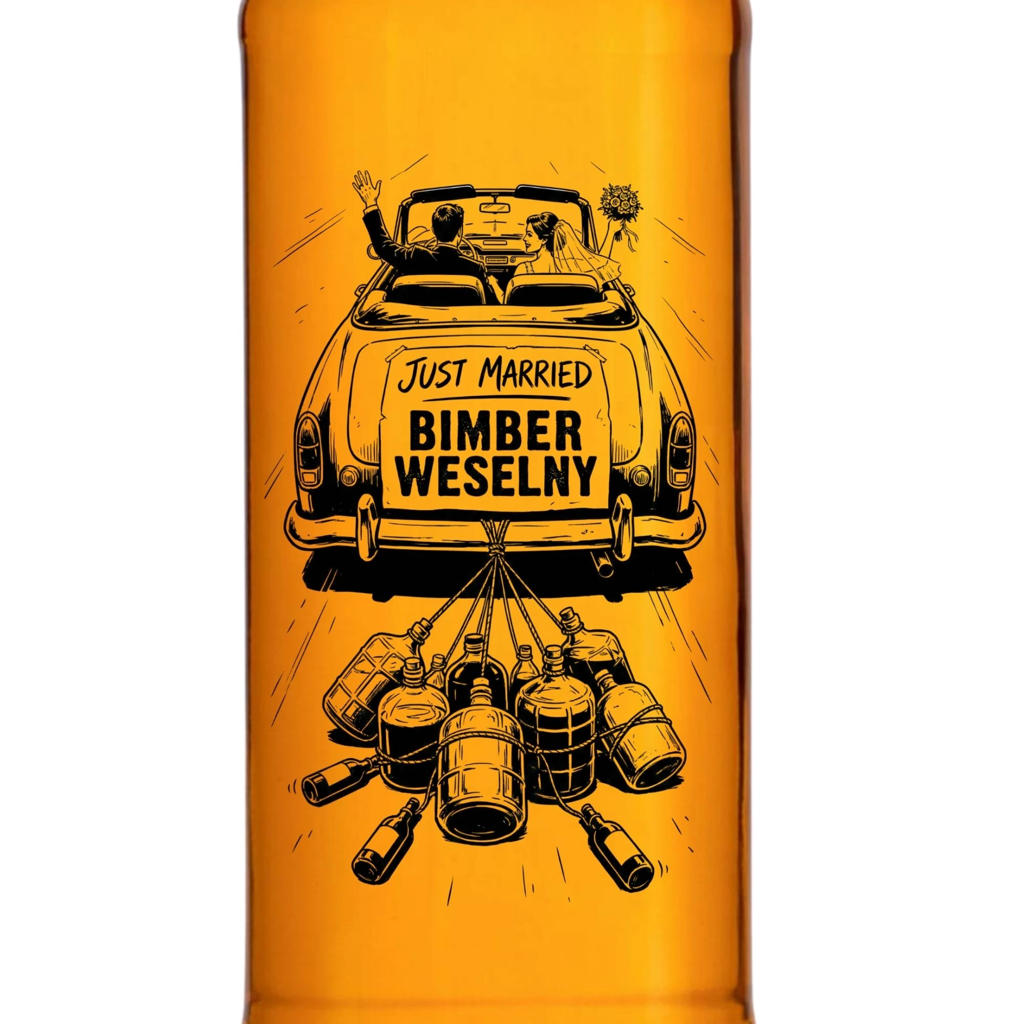 Ślub to najważniejsza impreza w życiu, dlatego Twój rzemieślniczy alkohol nie może wylądować w przypadkowym szkle! Inwestując w zestaw 20 sztuk sprawdzonych butelek monopolowych z żartobliwym nadrukiem ślubnego auta, dajesz jasny sygnał, że na tym stole rządzi jakość. Wyborny, rzemieślniczy bimber weselny wymaga oprawy VIP. Hurtownia Dr Bimber wysyła do Ciebie pancerne, puste szkło weselne w komplecie z hermetycznymi, czarnymi zakrętkami. To Ty jesteś mistrzem ceremonii i napełniasz je własnymi procentami. Te rewelacyjne butelki z nadrukiem na wesele sprawią, że wiejski stół oblężą tłumy gości!