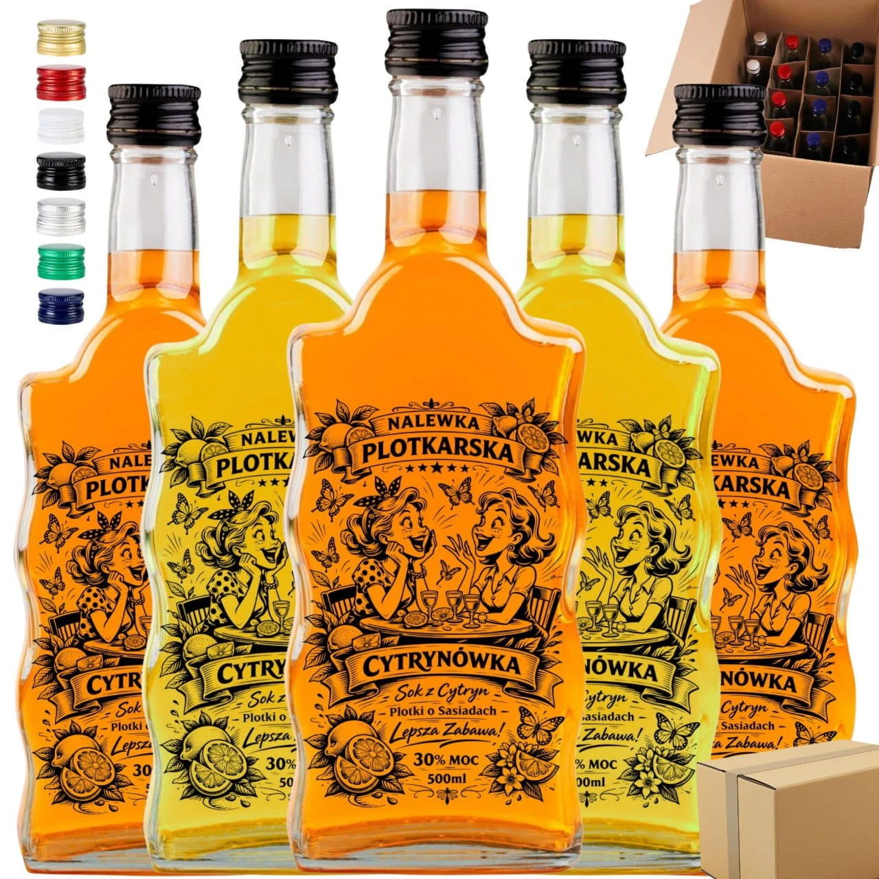 30x Ozdobne Butelki na Nalewki i Szkło na Wino CYTRYNÓWKA PLOTKARSKA 500ml