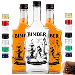 Planujesz weselną biesiadę z prawdziwym rozmachem i zależy Ci na tanich butelkach szklanych z najwyższej półki? Łap potężny, hurtowy zestaw! Oferujemy aż 40 sztuk sprawdzonych butelek Fala (500 ml) ze znakomitym, trwałym nadrukiem Młodej Pary przy fontannie i napisem "Na Zdrowie Młodej Parze". Wraz z tym rzemieślniczym szkłem na bimber otrzymujesz zestaw 40 idealnie dobranych, niezawodnych zakrętek monopolowych. Dr Bimber gra czysto: dostarczamy pancerne, całkowicie puste opakowania z hutniczym sitodrukiem. Czas wziąć sprawy w swoje ręce! Uwarz legendarny bimber/wódka, albo przygotuj mętną cytrynówkę. Napełnij te przepiękne karafki na bimber, stwórz imponujący wiejski stół i zaskocz wszystkich swoimi butelkami z własnym alkoholem!