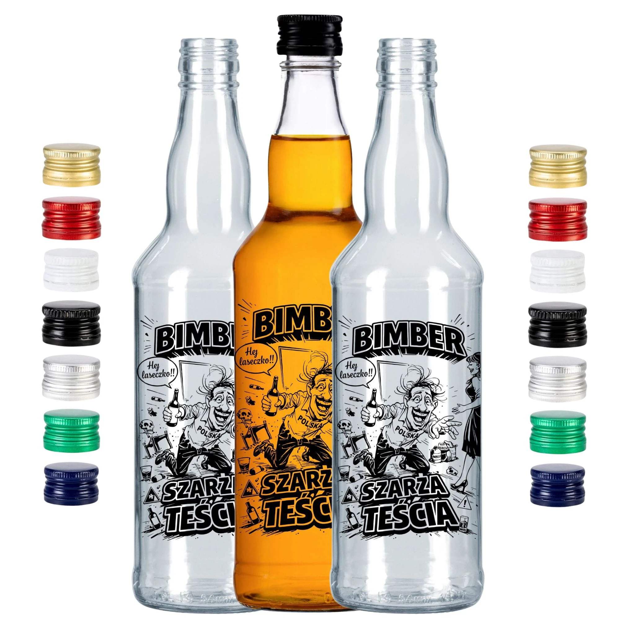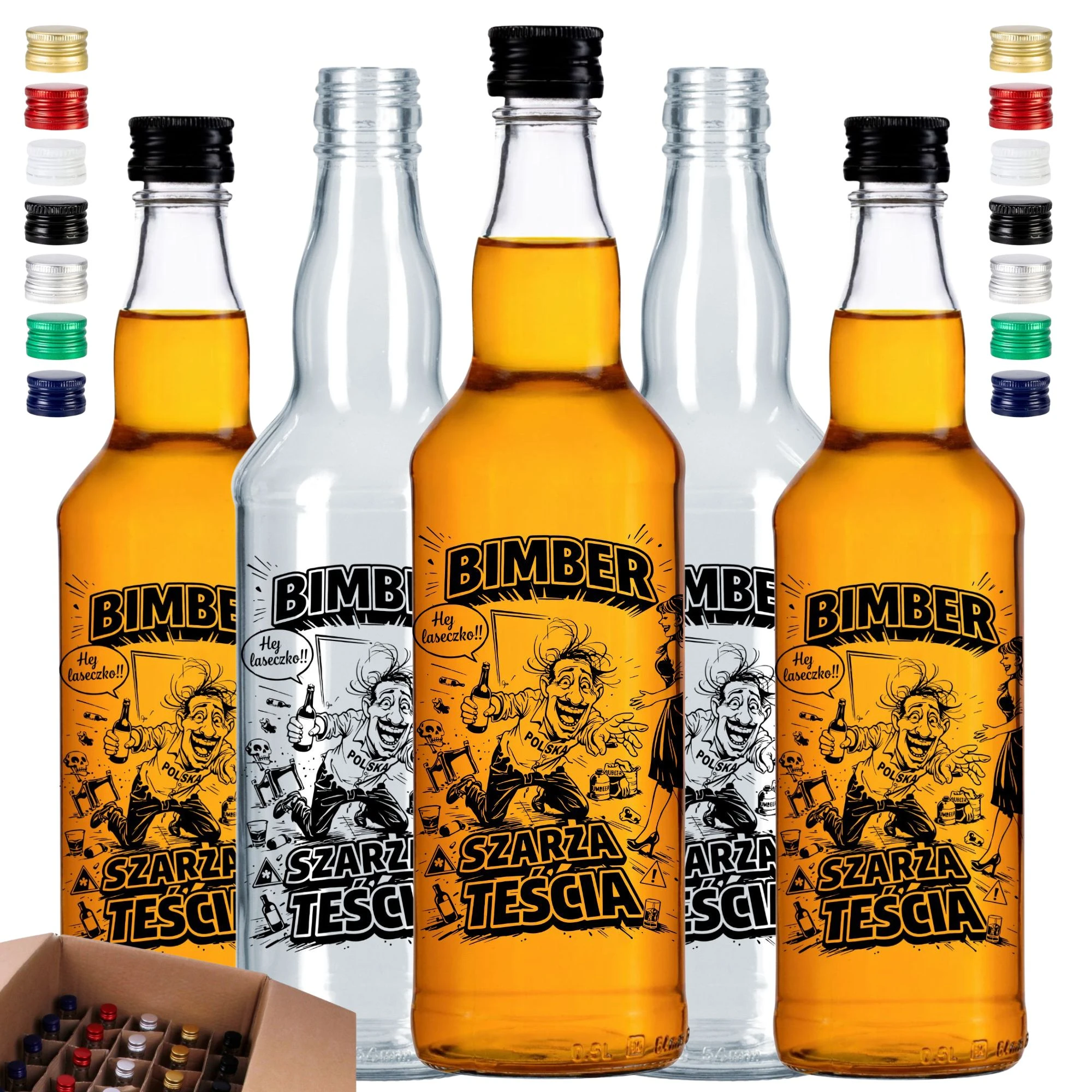 Opanuj hurtowy rozlew i przygotuj weselne zapasy, które rozbawią do łez każdego biesiadnika na sali! Wybierając ten potężny pakiet 40 sztuk butelek 500ml z komiksowym nadrukiem teścia w akcji, gwarantujesz sobie spokój logistyczny i absolutny hit wieczoru. Twój starannie dopracowany destylat to serce imprezy, dlatego dostarczamy Ci klasyczne butelki monopolowe w towarzystwie solidnych czarnych zakrętek. Ty zajmujesz się wyłącznie magią domowego rozlewu. Te fantastyczne, śmieszne butelki na wesele sprawią, że wiejski stół zachwyci nie tylko smakiem, ale i niesamowitym poczuciem humoru!