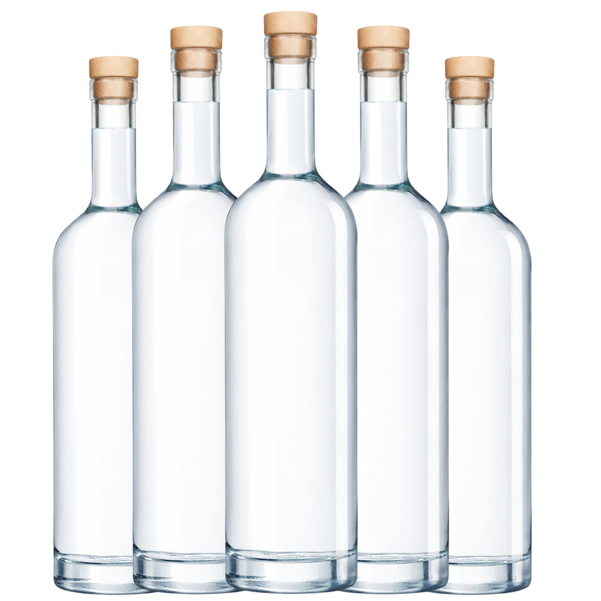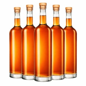 Elegancki zestaw 5 ciężkich butelek szklanych LILIA 750 ml wykonanych z grubego, luksusowego szkła. Klasyczny kształt pięknie eksponuje kolor trunków, a korek typu grzybek w komplecie zapewnia szczelne i stylowe zamknięcie. Idealne na nalewki, likiery, wino, wódkę oraz jako prezent premium.