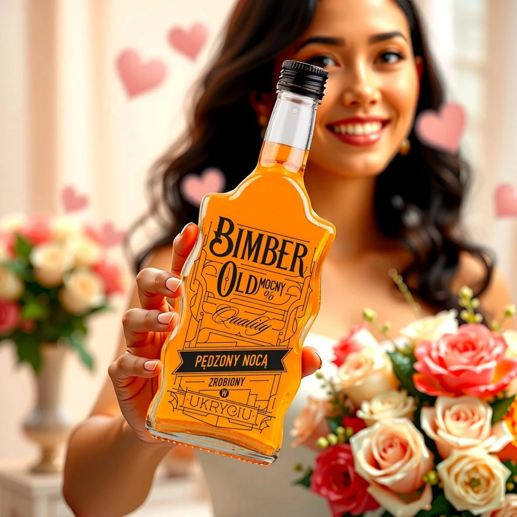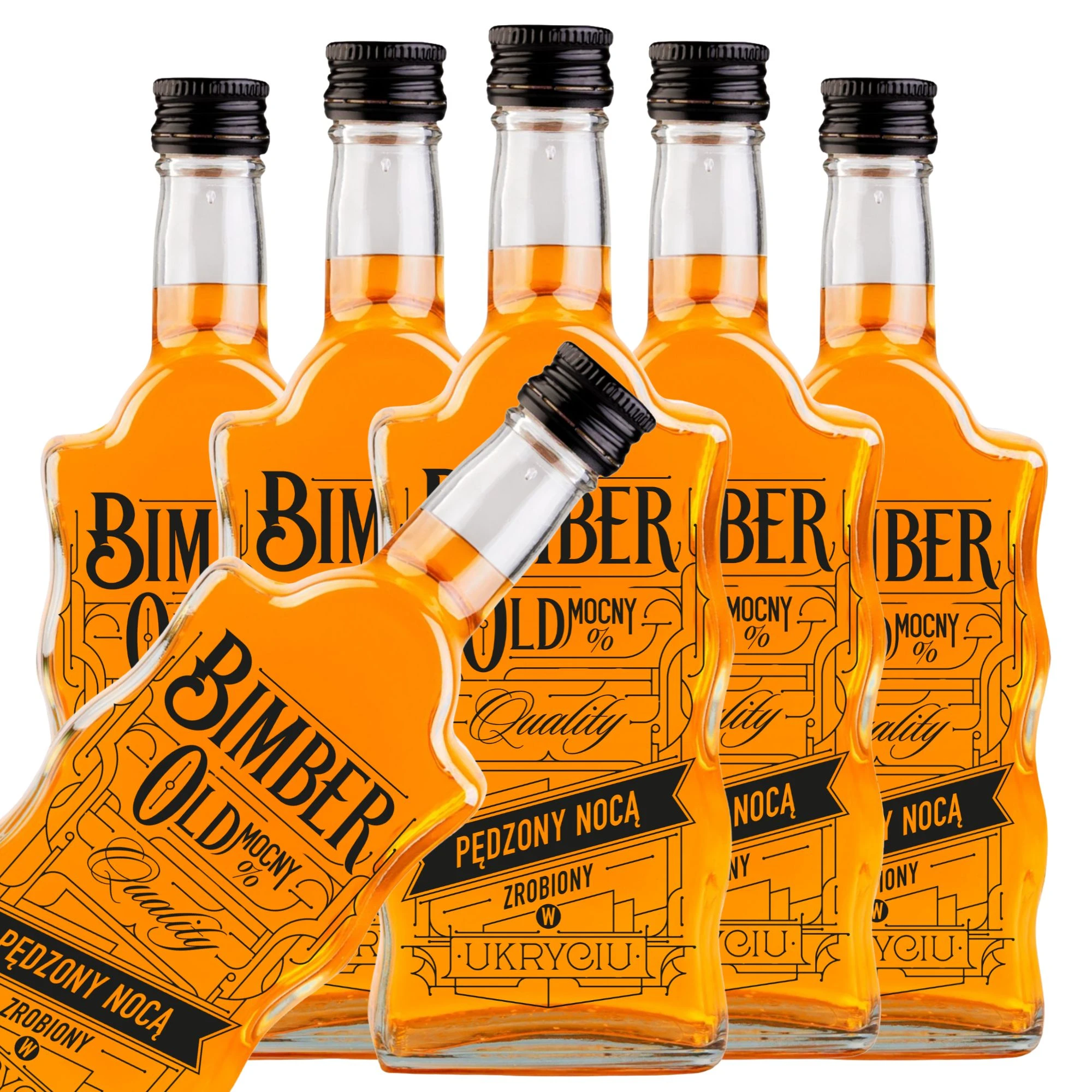 5x Butelki Bimbrownicze z Nadrukiem, Szkło Weselne, Flaszki - Fala BIMBER OLD 500ml
