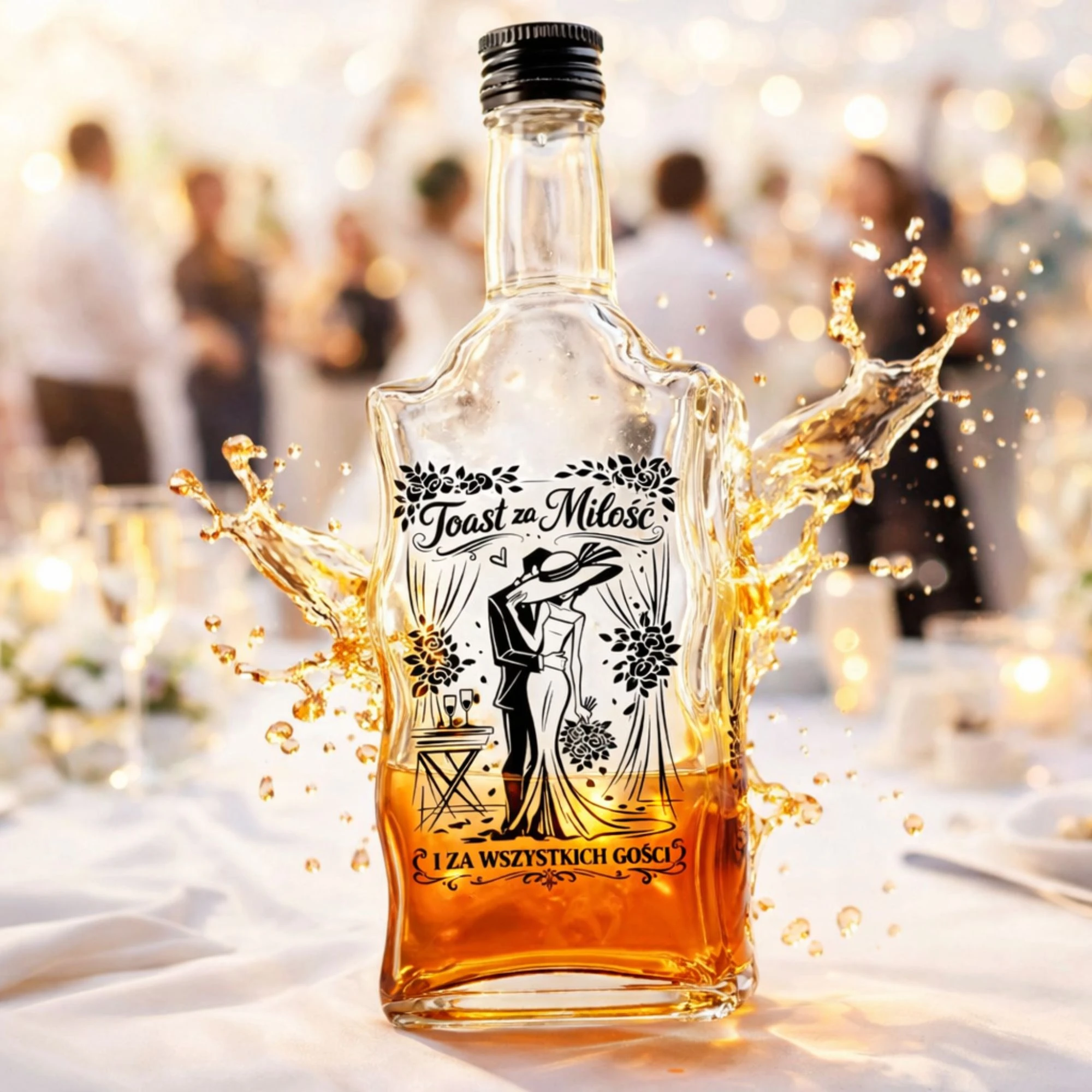 Dzień Ślubu to moment, który wymaga oprawy najwyższej próby. Jeśli planujesz wykwintne podziękowania dla rodziców, świadków, czy po prostu chcesz uzupełnić wiejski stół o absolutnie wyjątkowe detale, nasz zestaw 5 sztuk butelek "Toast za Miłość" to strzał w dziesiątkę. Elegancka grafika z Młodą Parą i wymownym hasłem doskonale oddaje podniosły charakter biesiady. W hurtowni Dr Bimber nie idziemy na kompromisy: dostarczamy Ci wyłącznie najczystsze, profesjonalne puste butelki szklane wraz z hermetycznym zamknięciem. Wybierz sprzęt klasy premium, wykreuj swój mistrzowski bimber/wódka i podaruj bliskim pamiątkę, która z dumą zajmie miejsce w ich barkach!