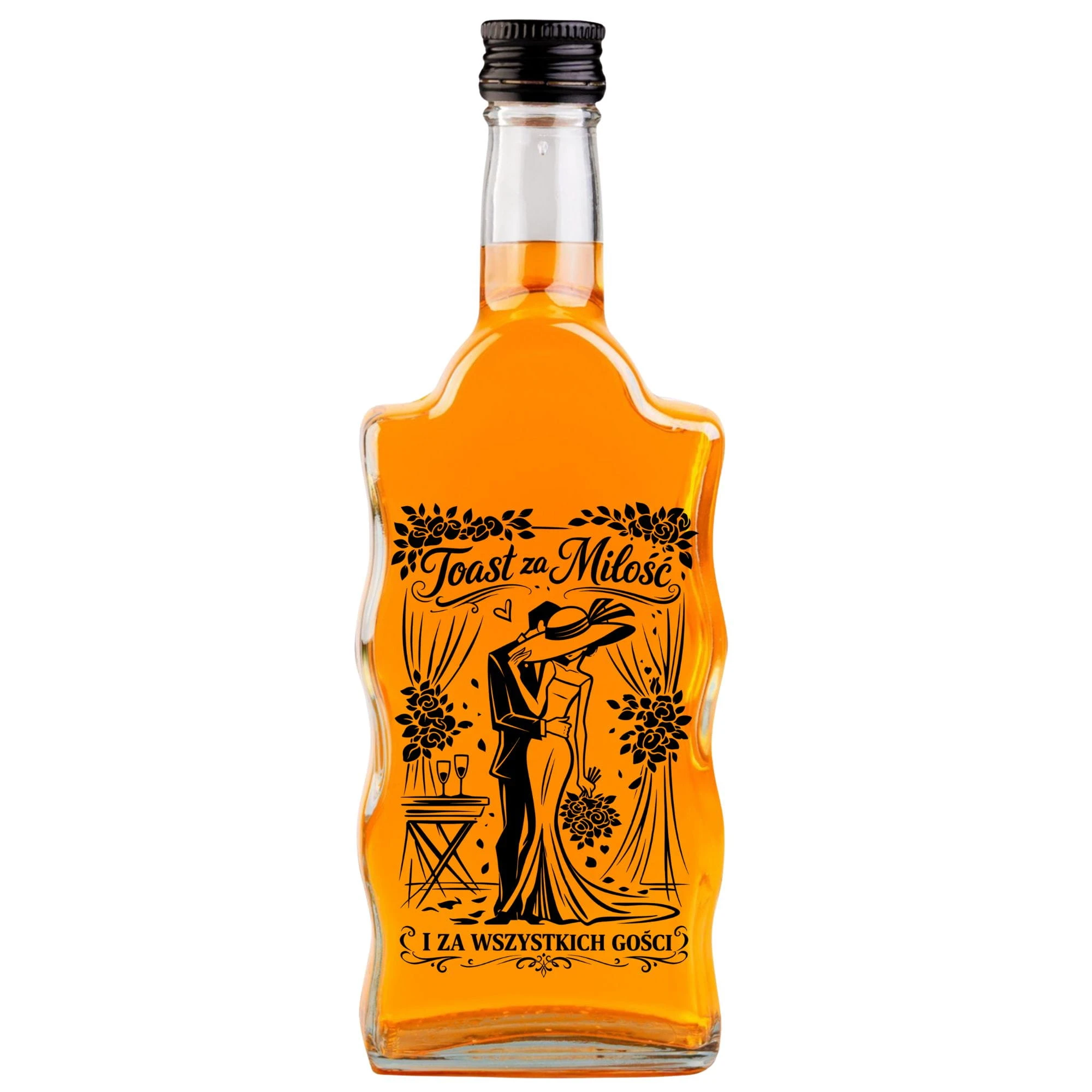5x Butelki na Wesele, Flaszki Ślubne, Szkło na Nalewki - Fala TOAST ZA MIŁOŚĆ 500ml