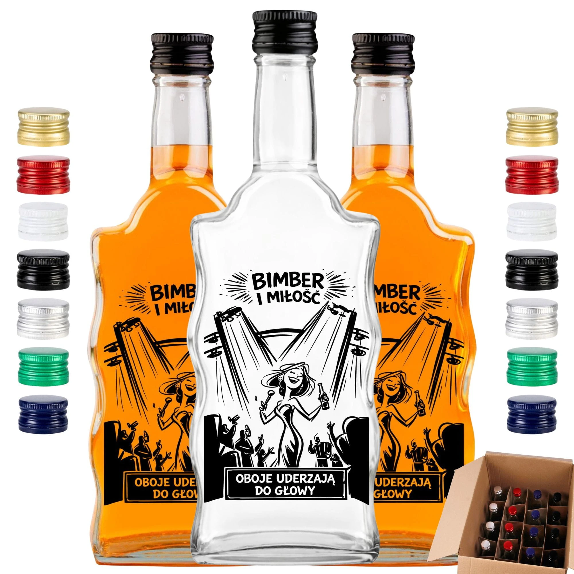 Są takie trunki, które zapamiętuje się na całe życie, i są takie opakowania, które kradną show na każdym stole. Prezentujemy absolutny hit rzemieślniczy – pojedynczą butelkę z rewelacyjną, komiksową grafiką i hasłem "Bimber i Miłość - Oboje uderzają do głowy". To idealny wybór na prezent, uzupełnienie wiejskiego stołu lub po prostu do domowej piwniczki. W Dr Bimber gramy w otwarte karty: sprzedajemy najwyższej klasy, puste butelki szklane wraz ze szczelnym zamknięciem. My dajemy Ci pancerną, rzemieślniczą oprawę, a Ty napełniasz ją swoim własnym, domowym alkoholem. Twój bimber/wódka zasługuje na szkło, które podkreśli jego charakter!
