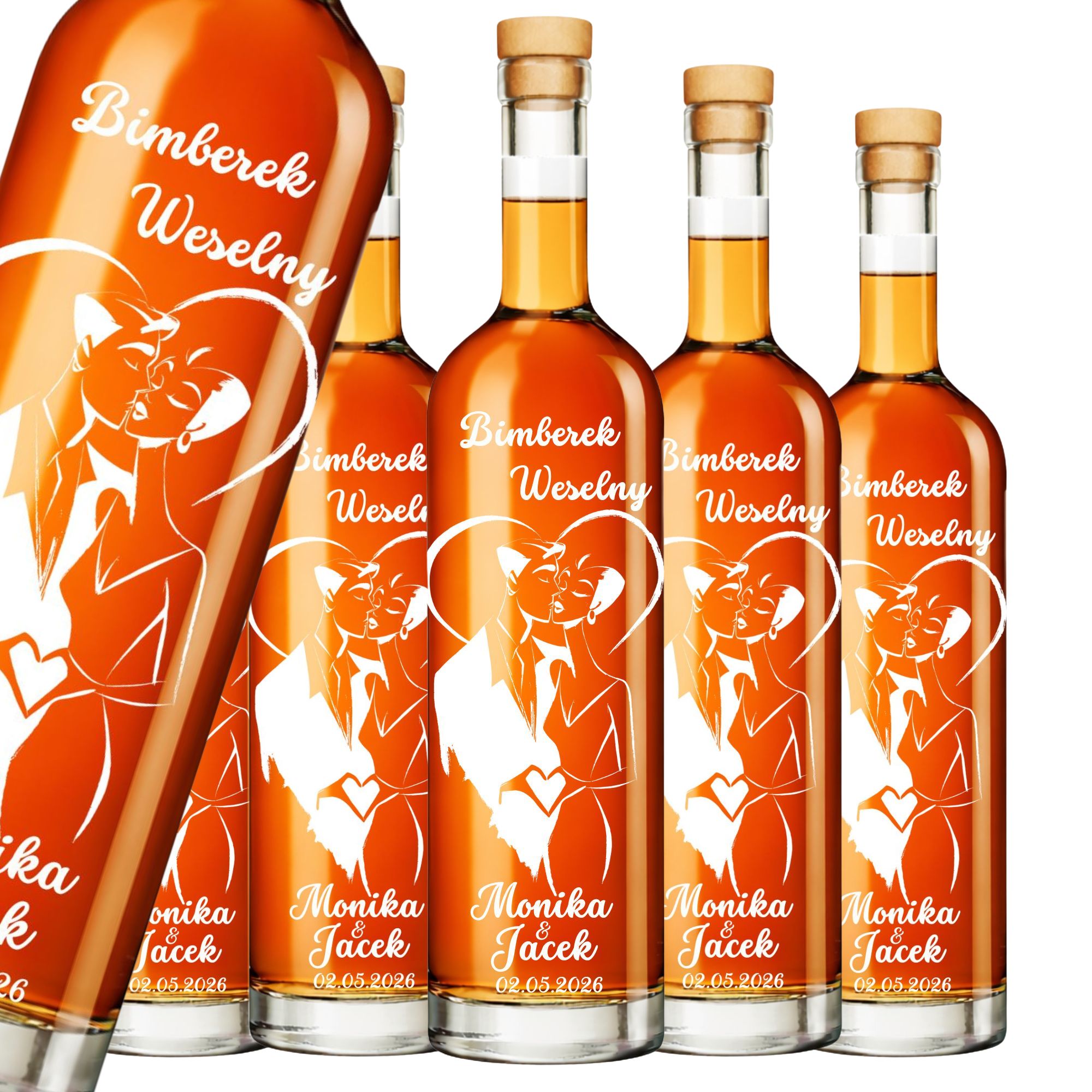To idealny wybór na bimberek weselny, alkohol na stoły, prezenty dla gości oraz pamiątkę ślubną, która łączy nowoczesną estetykę z trwałością i klasą.