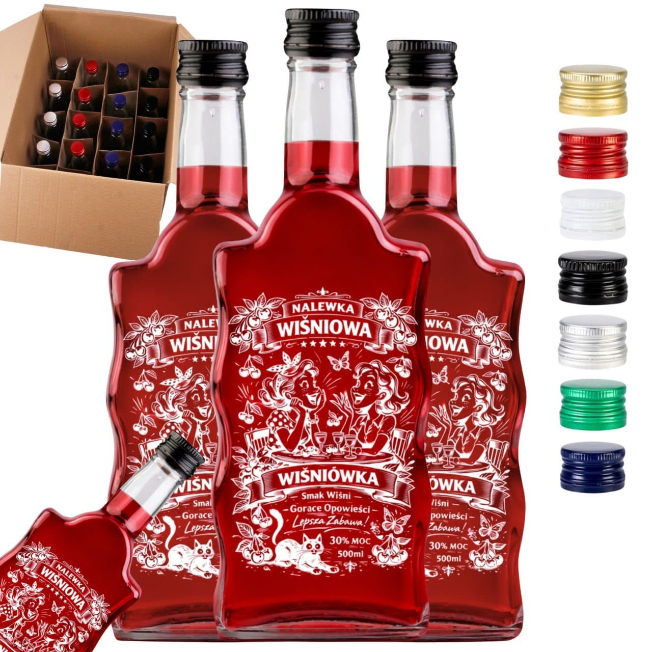 Butelka na Nalewki Owocowe i Eleganckie Szkło na Prezent WIŚNIÓWKA PLOTKARSKA 500ml