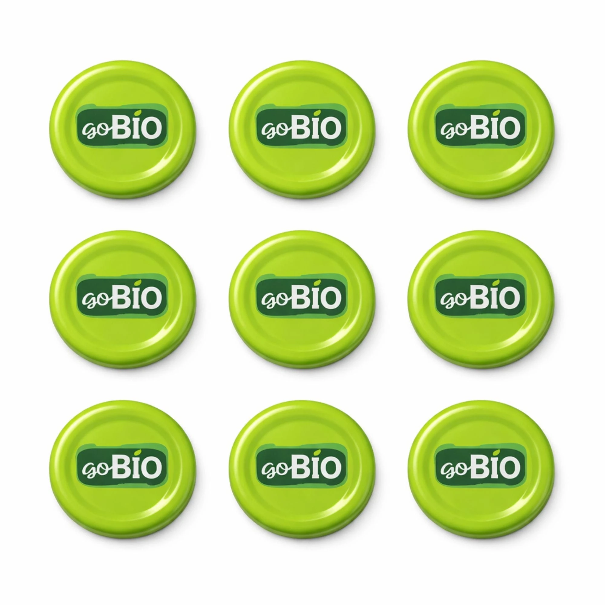 Zestaw x100 sztuk ekologicznych, zielonych zakrętek FI 43 mm z logotypem "goBIO". Idealne do szczelnego zamykania butelek na soki typu "soczek" oraz setek słoiczków na domowe konfitury i miody. Wykonane z pancernego metalu odpornego na pasteryzację, gwarantują pełną hermetyczność i unikalny, naturalny design Twojej rzemieślniczej manufaktury.
